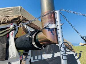 当然ですが幕内から幕の外に煙突を出すためにはどうしても煙突が一度幕に触れることになります。