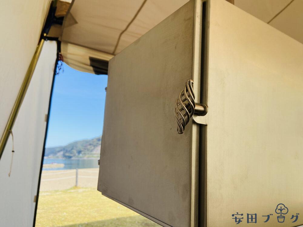 今回ご紹介するパイプオーブンはテンマクデザインWINNERWELLのコラボ商品です。ヤスダが使っているストーブもテンマクデザインとWINNERWELLのコラボ商品、ウッドストーブLサイドビューですので相性はバッチリです!