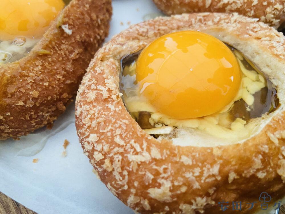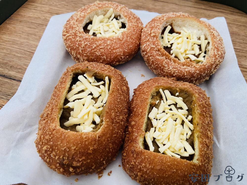 市販のカレーパンも揚げたてのようにカリカリになります!さらに真ん中をくり抜いてチーズとタマゴをトッピングして焼くとご馳走レベル!